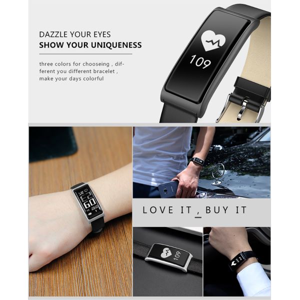 Luxury leather strap smart wristband C9 assistive touch screen heartrate pedometer bracelets Images |